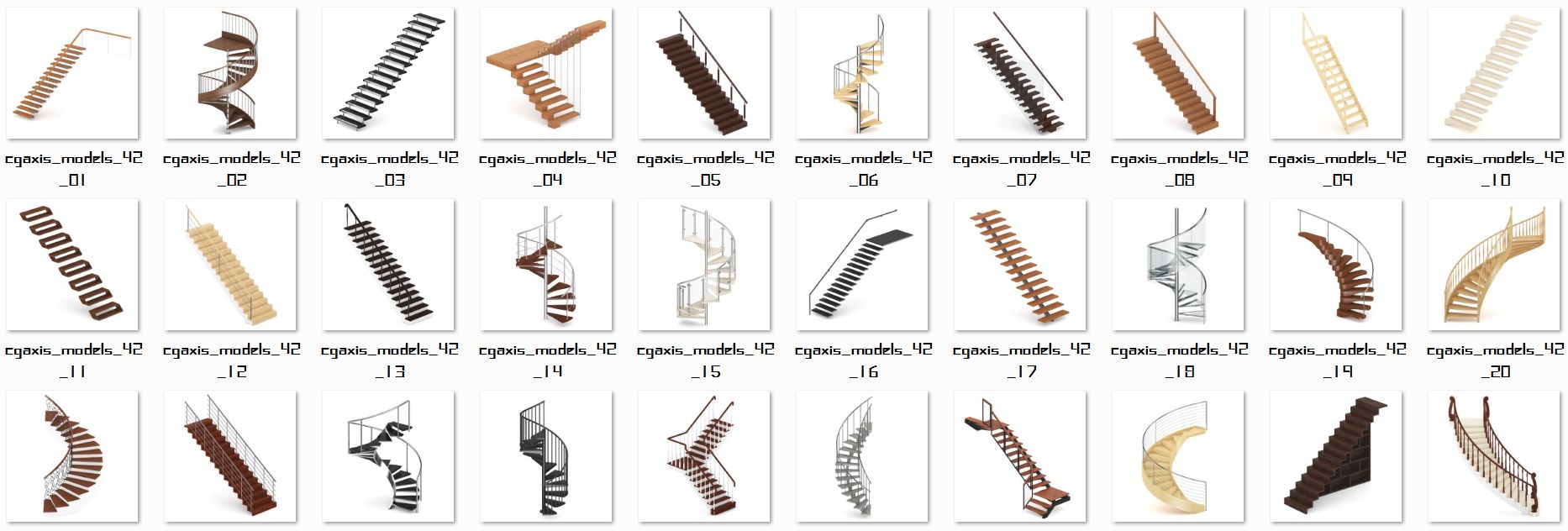 Models from this collection are great to your house projects. .. Collection containing 30 highly detailed 3d models of stairs.
